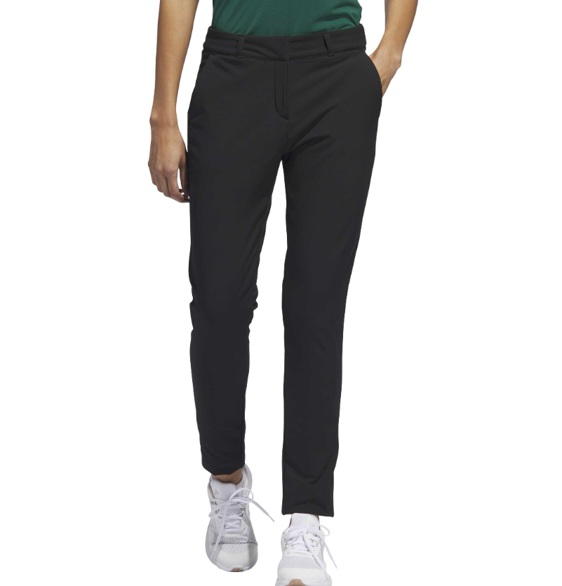 Das Vier-Wege-Stretch-Material sorgt für volle Bewegungsfreiheit bei jedem Schwung, während die feminine, figurbetonte Passform eine elegante Silhouette schafft. Der mittelhohe Bund bietet sicheren Sitz und hohen Tragekomfort, auch über mehrere Stunden hinweg. Praktische Seitentaschen und Gesäßtaschen bieten ausreichend Platz für Scorekarte, Tees oder kleine Accessoires. Das dezente Adidas-Logo rundet das Design sportlich-elegant ab.