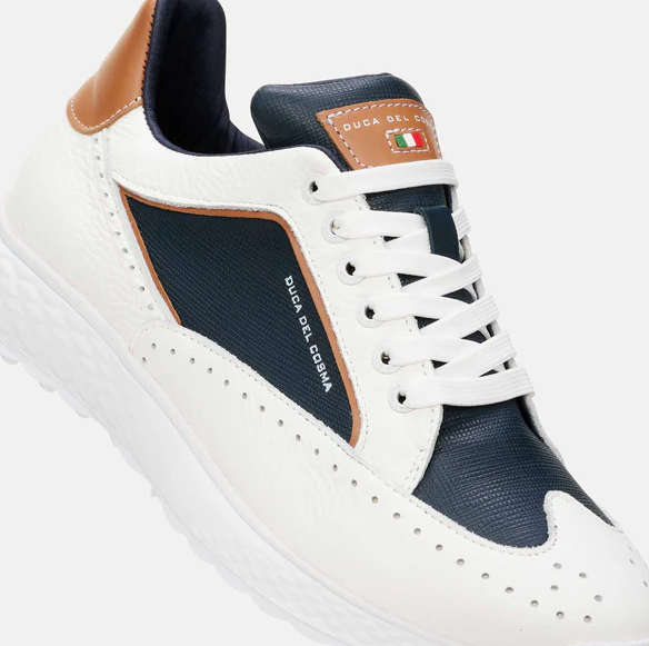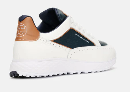 Der Duca del Cosma Girona verbindet italienisches Handwerk mit modernem Komfort: Aus hochwertigem italienischen Nappaleder gefertigt und ergänzt durch ein wasserdichtes Sockensystem aus recycelbarer Mikro-Faser (On Stream®), garantiert er trockene und stilvolle Runden auch bei feuchtem Wetter. Die ultraleichte D-EVA® EVA-Außensohle sorgt für exzellente Traktion und Stabilität bei jedem Schritt, während die ARNEFLEX® Memory-Foam-Einlegesohle gemeinsam mit dem Absorbing Shock System (ASS) für bestmögliche Dämpfung und Komfort von der ersten Minute an sorgt. Der Schuh ist in einer Medium- bis Breite-Passform ausgelegt und mit einem spikeless Profil ideal für den Einsatz auf und neben dem Platz. Mit seinem sportlich-eleganten Look und der Premium-Ausstattung ist der Girona die perfekte Wahl für ambitionierte Golferinnen und Golfer, die Stil und Performance gleichermaßen erwarten.