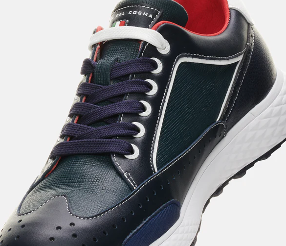Der Duca del Cosma Girona verbindet italienisches Handwerk mit modernem Komfort: Aus hochwertigem italienischen Nappaleder gefertigt und ergänzt durch ein wasserdichtes Sockensystem aus recycelbarer Mikro-Faser (On Stream®), garantiert er trockene und stilvolle Runden auch bei feuchtem Wetter. Die ultraleichte D-EVA® EVA-Außensohle sorgt für exzellente Traktion und Stabilität bei jedem Schritt, während die ARNEFLEX® Memory-Foam-Einlegesohle gemeinsam mit dem Absorbing Shock System (ASS) für bestmögliche Dämpfung und Komfort von der ersten Minute an sorgt. Der Schuh ist in einer Medium- bis Breite-Passform ausgelegt und mit einem spikeless Profil ideal für den Einsatz auf und neben dem Platz. Mit seinem sportlich-eleganten Look und der Premium-Ausstattung ist der Girona die perfekte Wahl für ambitionierte Golferinnen und Golfer, die Stil und Performance gleichermaßen erwarten.