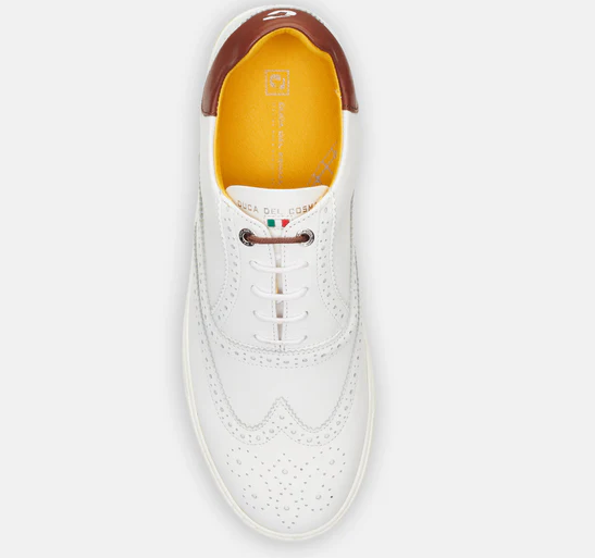 Der Duca del Cosma Regent White ist ein luxuriöser Herren-Golfschuh, der Eleganz und Leistung auf höchstem Niveau vereint. Gefertigt aus feinstem, handverarbeitetem Nappaleder überzeugt er durch seine außergewöhnliche Haptik und makellose Verarbeitung. Das klassische Weiß wird durch edle Details in kontrastierenden Farbtönen ergänzt und verleiht dem Schuh eine zeitlos-sportliche Ausstrahlung – perfekt für Golfer, die Wert auf Stil und Funktion legen.