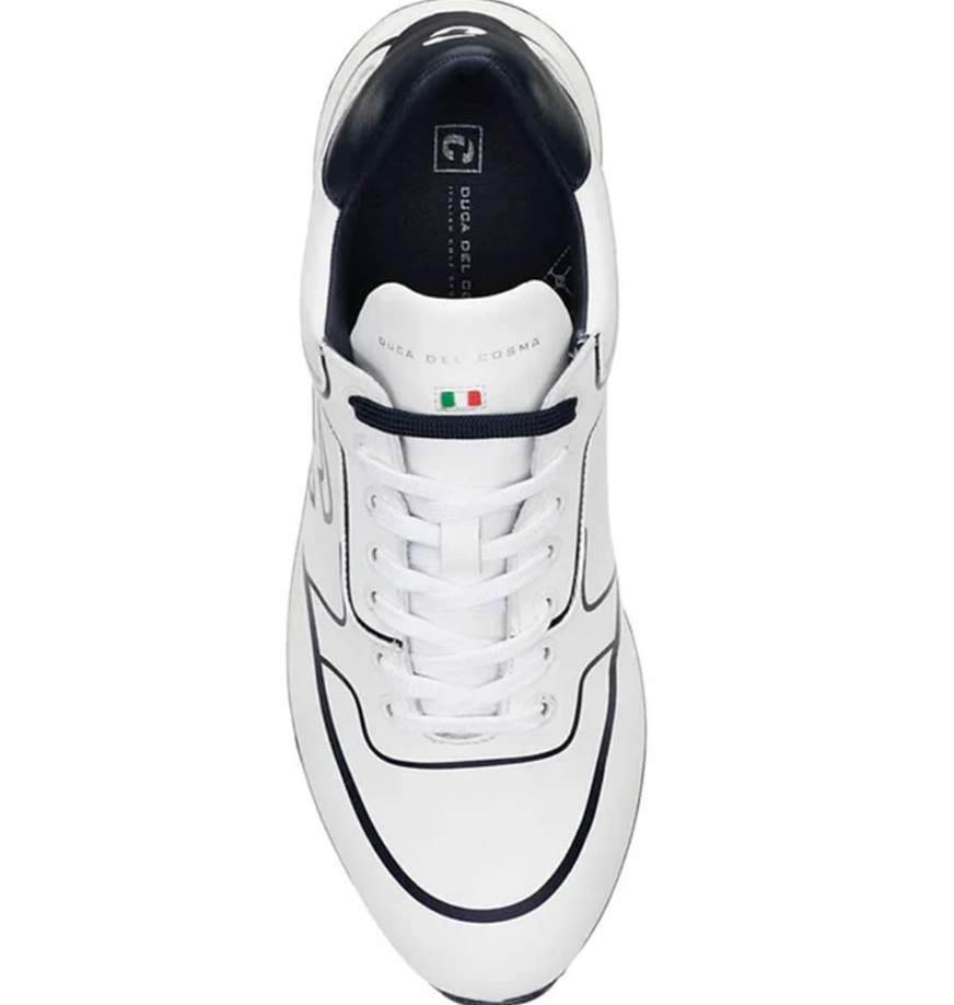 Der Duca del Cosma Flyer ist ein stilvoller Premium-Golfschuh, der Komfort und Performance auf exzellente Weise verbindet. Gefertigt aus feinstem italienischen Nappaleder, bietet er eine luxuriöse Haptik sowie eine langlebige Qualität. Dank seiner vollständig wasserdichten Konstruktion und der atmungsaktiven Eigenschaften bleiben Ihre Füße selbst bei feuchtem Platzverhältnis trocken und angenehm temperiert.
