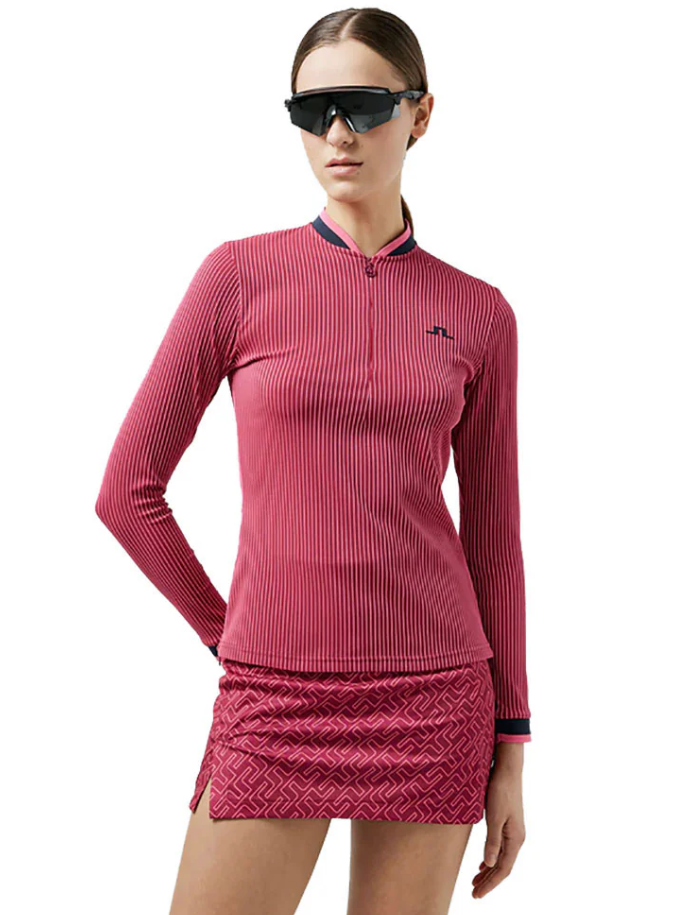 Der J.Lindeberg Leonor Golf Mid Layer – Farbe „Anemone“ überzeugt mit stilvoller Funktion und modernem Design für die Golfrunde. Gefertigt aus wellenförmig geripptem Jersey-Material, vereint er Elastizität, Tragekomfort und eine dynamische Optik durch kontrastierende Streifen an Ärmeln und Kragen — der Zweifach-Reißverschluss vorn macht den Layer zugleich alltagstauglich. Die hochwertige Stoffqualität sorgt für zuverlässigen Feuchtigkeitstransport und eine Passform, die Bewegung und Stil gleichermaßen unterstützt. Ideal als Zwischenschicht bei wechselhaften Bedingungen auf dem Platz oder kombiniert mit Jacke und Polo für einen eleganten Golf-Look.