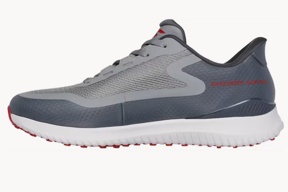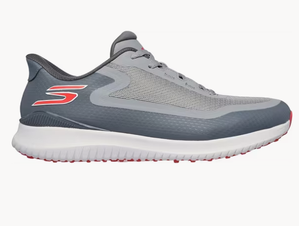 Der Skechers GO GOLF Flight Slip-Ins™ Herren-Golfschuh (Modell 214131 WGY) vereint sportlichen Komfort mit innovativer Slip-In-Technologie für ein müheloses An- und Ausziehen – ganz ohne Bücken oder Ziehen. Das wasserabweisende Mesh-Obermaterial sorgt für Atmungsaktivität und Schutz bei wechselhaftem Wetter. Die gepolsterte Heel Pillow™ Fersenkonstruktion bietet festen Halt, während die GOGA MAX® Innensohle und ULTRA FLIGHT® Dämpfung höchsten Gehkomfort garantieren – auch über 18 Loch hinaus. Die spikeless Gummisohle bietet zuverlässige Traktion auf jedem Untergrund. Ein idealer Golfschuh für Spieler, die Leichtigkeit, Komfort und Funktionalität im modernen Design suchen.