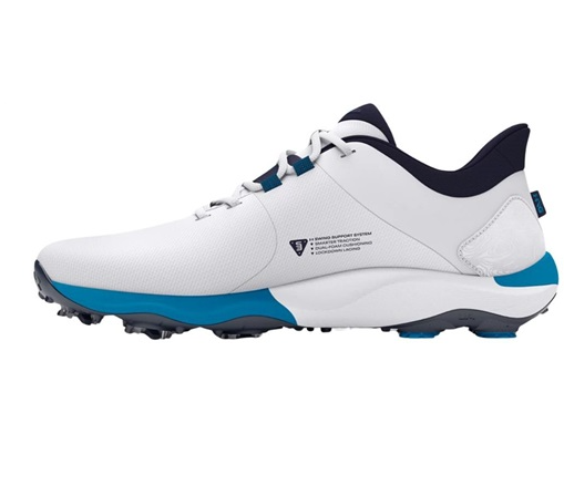 Für Komfort und Energierückgabe sorgt ein duales Dämpfungssystem aus UA HOVR™-Schaumstoff und Charged Cushioning®, das Aufprall spürbar mildert und natürliche Fußbewegungen unterstützt. Die S3-Spikes, in Zusammenarbeit mit Softspikes® und einem Golf-Biomechaniker entwickelt, bieten richtungsstabile Traktion unter allen Bedingungen.
