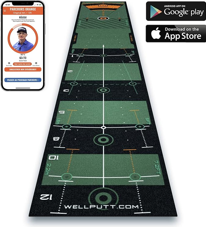 Die WELLPUTT Putting Mat 3 m Green ist eine hochwertige Trainingsmatte für das Putten, entwickelt, um Technik, Präzision und Geschwindigkeit realistisch zu verbessern. Mit klaren Ziellinien und verschiedenen Trainingszonen ausgestattet, bietet sie abwechslungsreiche Übungsmöglichkeiten für kurze und mittlere Putts. Das speziell entwickelte Rollverhalten entspricht dem von echten Grüns und macht die Matte zu einem idealen Hilfsmittel für effektives Indoor-Training.