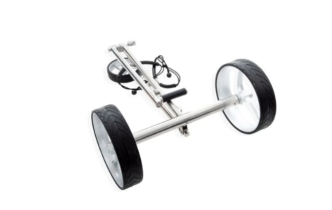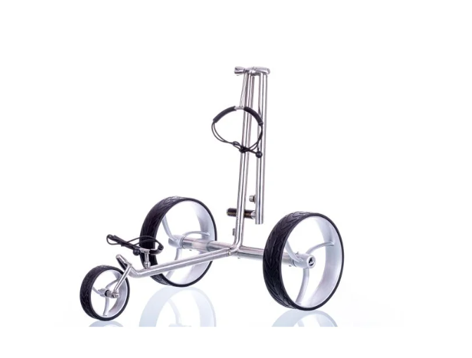 Ein eleganter Premium-E-Trolley aus hochwertigem Edelstahlrahmen (poliert oder pulverbeschichtet Schwarz), der dank seiner innovativ in Deutschland hergestellten Antriebe besonders stilvoll und gleichzeitig leicht (nur 8,9 kg) ist – 1,7 kg leichter als der Streaker.