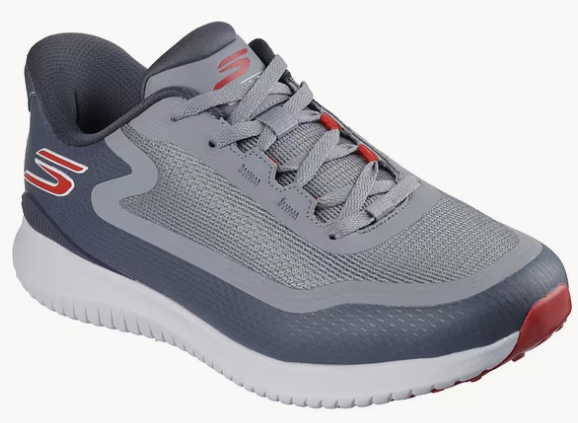 Der Skechers GO GOLF Flight Slip-Ins™ Herren-Golfschuh (Modell 214131 WGY) vereint sportlichen Komfort mit innovativer Slip-In-Technologie für ein müheloses An- und Ausziehen – ganz ohne Bücken oder Ziehen. Das wasserabweisende Mesh-Obermaterial sorgt für Atmungsaktivität und Schutz bei wechselhaftem Wetter. Die gepolsterte Heel Pillow™ Fersenkonstruktion bietet festen Halt, während die GOGA MAX® Innensohle und ULTRA FLIGHT® Dämpfung höchsten Gehkomfort garantieren – auch über 18 Loch hinaus. Die spikeless Gummisohle bietet zuverlässige Traktion auf jedem Untergrund. Ein idealer Golfschuh für Spieler, die Leichtigkeit, Komfort und Funktionalität im modernen Design suchen.