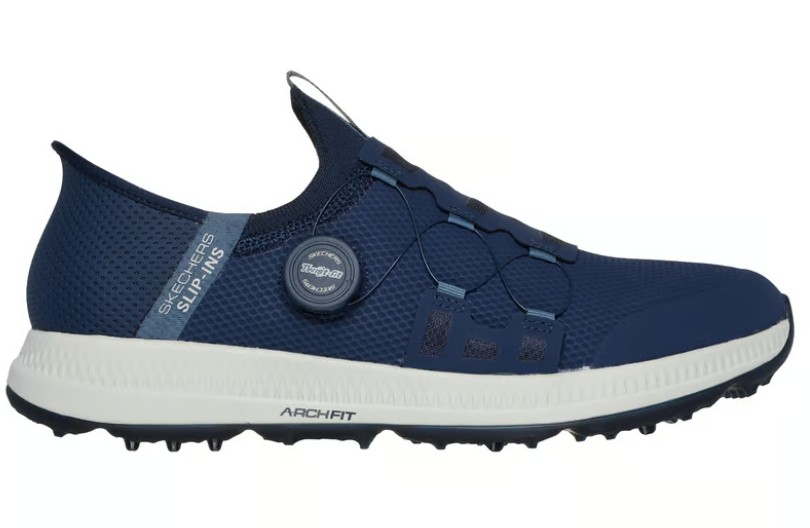 Der Skechers Go Golf Elite 5 Slip 'In ist ein innovativer, spikeless Golfschuh, der höchsten Komfort mit herausragender Funktionalität verbindet. Dank der Slip‑In-Technologie (Hands Free Slip-ins®) und dem integrierten Heel Pillow™ ist das Einsteigen spielend leicht und selbst ohne Bücken oder Schuhanzieher möglich. Die Twist Fit™-Schnürung erlaubt eine millimetergenaue Anpassung für sicheren Sitz – ganz ohne klassische Schnürsenkel