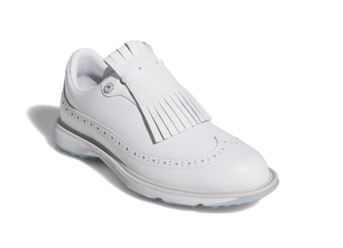 Der adidas MC Zoysia Spikeless Golfschuh für Damen vereint klassisches Design mit moderner Technik in einem vielseitig tragbaren Sneaker-Stil. Er besitzt ein Obermaterial aus hochwertigem Full-Grain-Leder kombiniert mit synthetischen Elementen und einem dekorativen Kiltie-Fransenverschluss, der stilvolle Optik mit Schutz vor Schmutz und Abnutzung verbindet.
